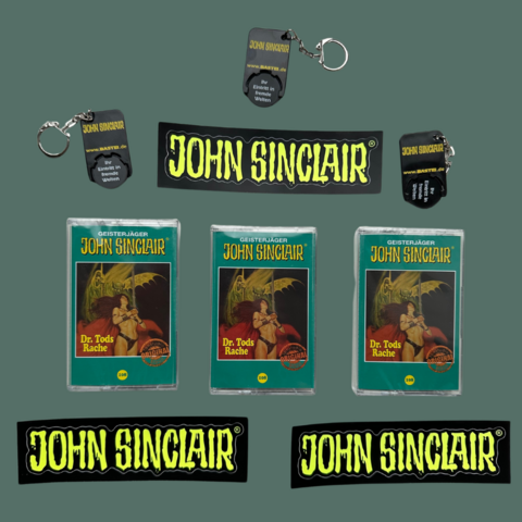 Beantworte unsere Gewinnspiel-Frage und gewinne eine von drei Musikkassetten (!) mit der Tonstudio-Braun-Folge 108 "Dr. Tods Rache" sowie einem John-Sinclair-Aufkleber und einem Schlüsselanhänger.