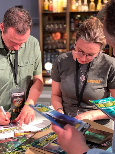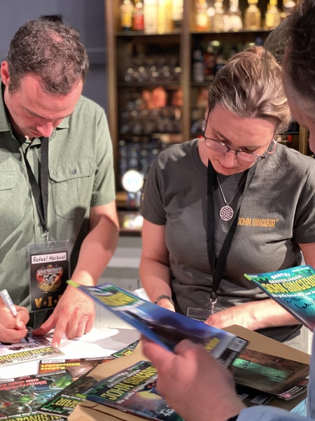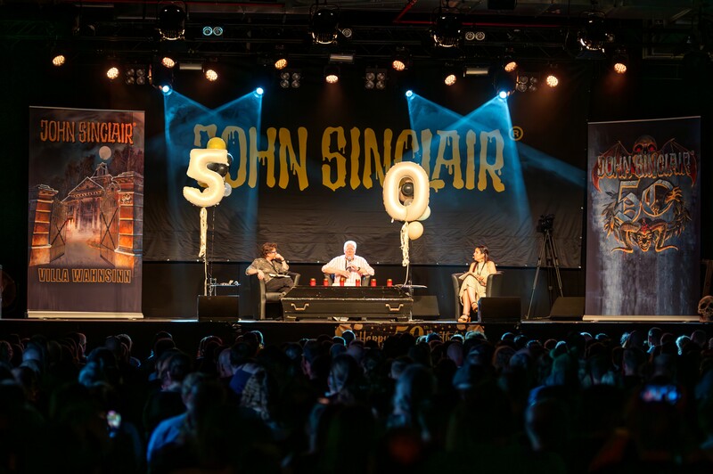 Über 700 Besucher:innen huldigten John Sinclair zum 50-jährigen Jubiläum. Am 15.07.2023 wurde im "Carlswerk Victoria & Club Volta" in Köln gefeiert, signiert, getalked, gemeetet, gekauft, gezaubert, moderiert, am Glücksrad gedreht und – als Abschluss eines ereignisreichen Tages - einem Live-Hörspiel der Extraklasse zugehört. Alle freuten sich, einen ganzen Tag im Sinclair-Kosmos zu erleben und ihren Stars live zu begegnen. Am meisten freute sich sicher Sinclair-Schöpfer Jason Dark selbst, der so viel Ruhm und Zuwendung genoss, für jeden Fan ein nettes Wort hatte und mit zahlreichen Anekdoten sein Publikum zu unterhalten wusste.