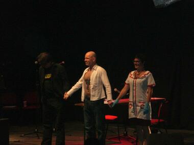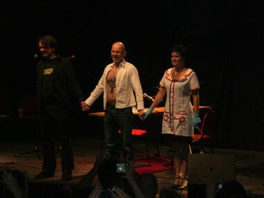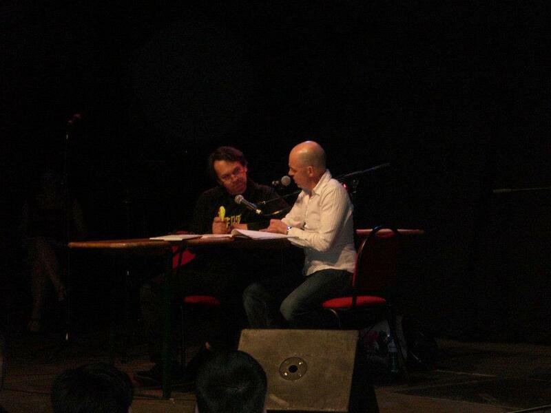 Martin May, Dietmar Wunder und Ilya Welter live auf der Bühne bei der Hörspiel-Arena in Köln am 09.06.2012.