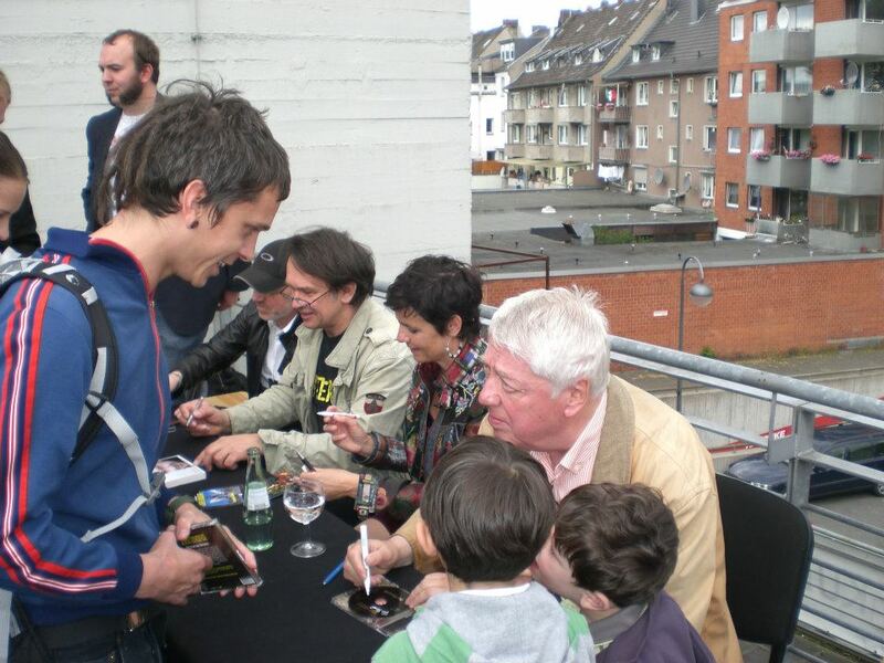 Sinclair-Schöpfer Jason Dark, Ilya Welter, Martin May und Dietmar Wunder geben Autogramme..