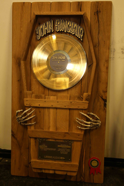 Am 09.11.2013 wurde an Jason Dark die Goldene Schallplatte für die Hörspielfolge 1 „Im Nachtclub der Vampire“ verliehen. Die Auszeichnung für über 150.000 verkaufte Tonträger wurde ihm im Rahmen des „Weekend of Horrors“ in der Turbinenhalle Oberhausen überreicht. Im Vorfeld gab es noch eine Autogrammstunde auf der Convention, viele Fans kamen teils von sehr weit her, um dem Meister der Geister zu begegnen. Hier sind einige Impressionen.