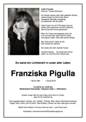 Franzi, wir vermissen Dich schon jetzt über alle Maße, vor allem Dein Lachen, aber wir werden Dich nie vergessen.