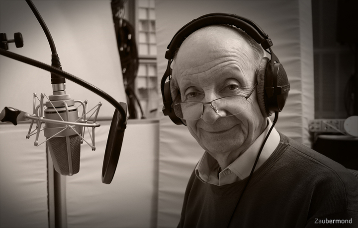 Das Foto zeigt Peter Matić bei unserer letzten Aufnahme im September 2018 in den Wiener „4EarStudios“.